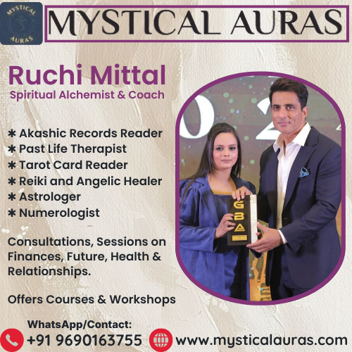 Founder of Mystical Auras, renowned spiritual healer, Akashic Records Master & Healer, Angelic Healer, Numerologist, and award-winning Tarot Card Reader who helps people across the world find clarity, healing, and life direction.